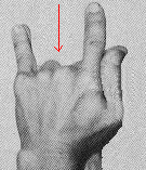 To open the base chakra, place your hands in the position shown in the photo, like the sign of the horns. Your finger pads should be touching, and your thumbs should be touching side by side down to the fleshy part known in palmistry as the "Mount of Venus." This mudra produces a heat sensation in the hands and stimulates the base chakra. Don't worry if you cannot feel the heat sensation, as this takes sensitivity.
